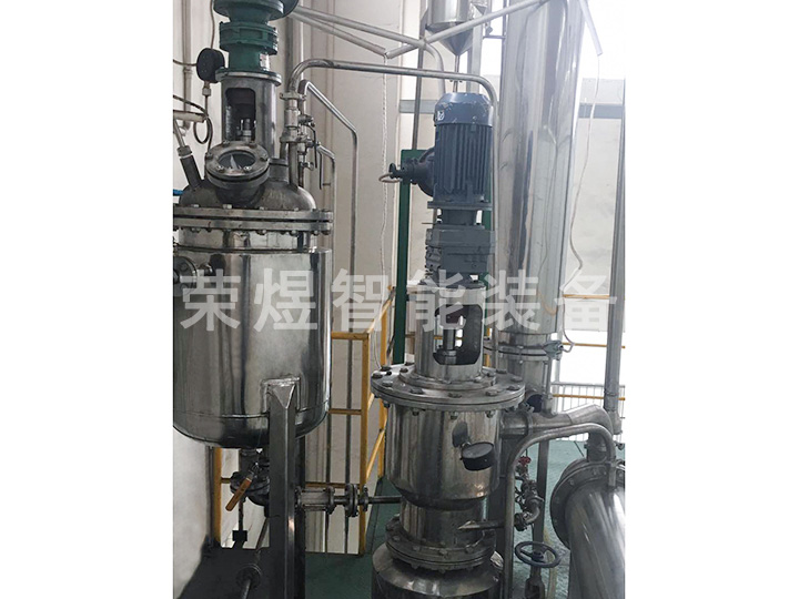 結構:本設備主要包括薄膜蒸發器、內置冷凝器、二級冷凝器、原料罐、成品罐、低沸點罐、高沸點罐等部件組成,全部由不銹鋼制造。